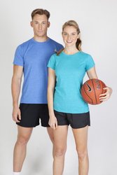 The Heather Tee combines cotton and poly to create a heathered, or marle look. The Heather Tee is breathable, light andd stylish.